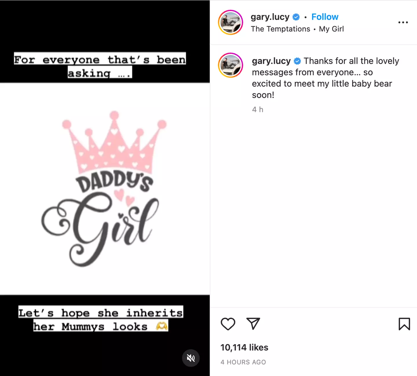 Gary Lucy has publicly revealed the gender of his baby with ex-girlfriend Laura Anderson - though Laura has yet to comment on the announcement.