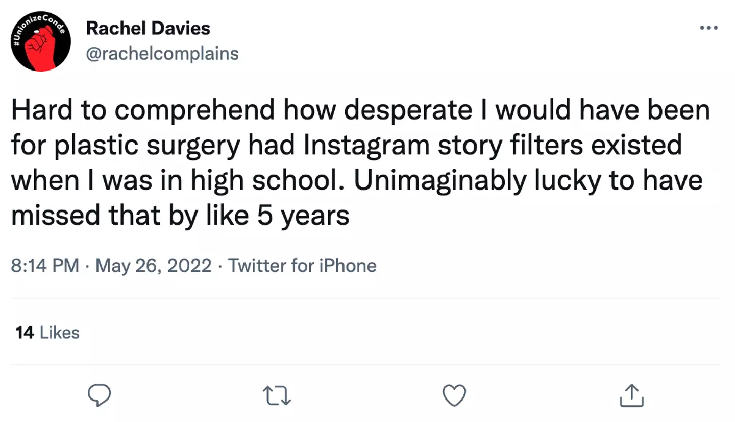 As a result of the rise of filters, people are instead coming to cosmetic surgeons for more subtle changes, but alas, still ones which are unachievable.