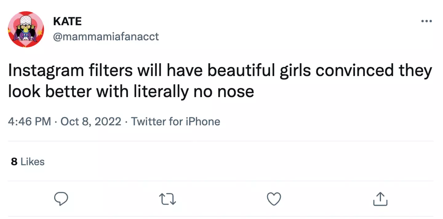 While using filters at first seems harmless, it is people's obsession with them and view that the filter turns them into a 'better' version of themselves which is worrying.