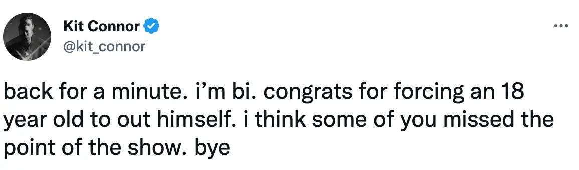 "Back for a minute", he wrote. "I’m bi. Congrats for forcing an 18 year old to out himself. I think some of you missed the point of the show. Bye."