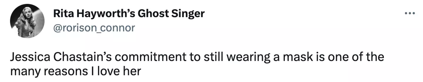 Another commentator wrote: “Jessica Chastain deserves an award for her dedication to wearing a mask. I love you, queen.”