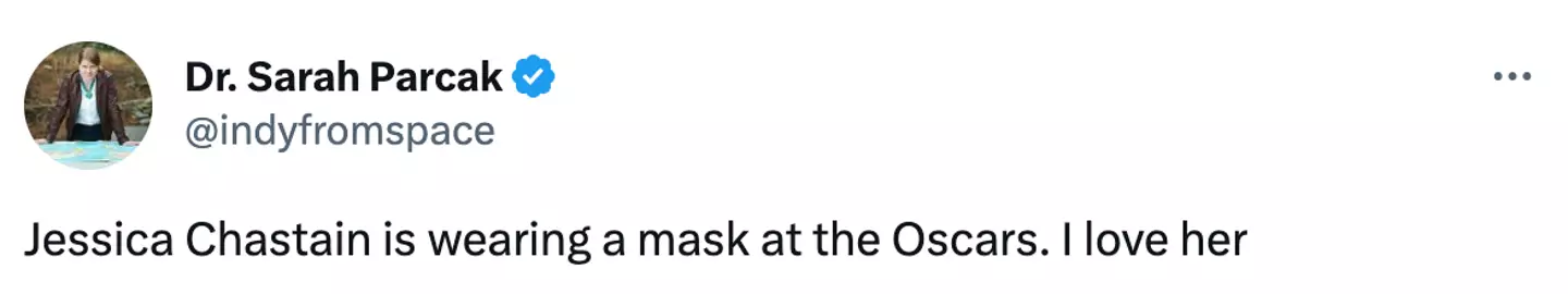 Multiple viewers on Twitter showered Jessica with praise. One fan gushed: “Jessica Chastain is wearing a mask at the Oscars. I love her.”
