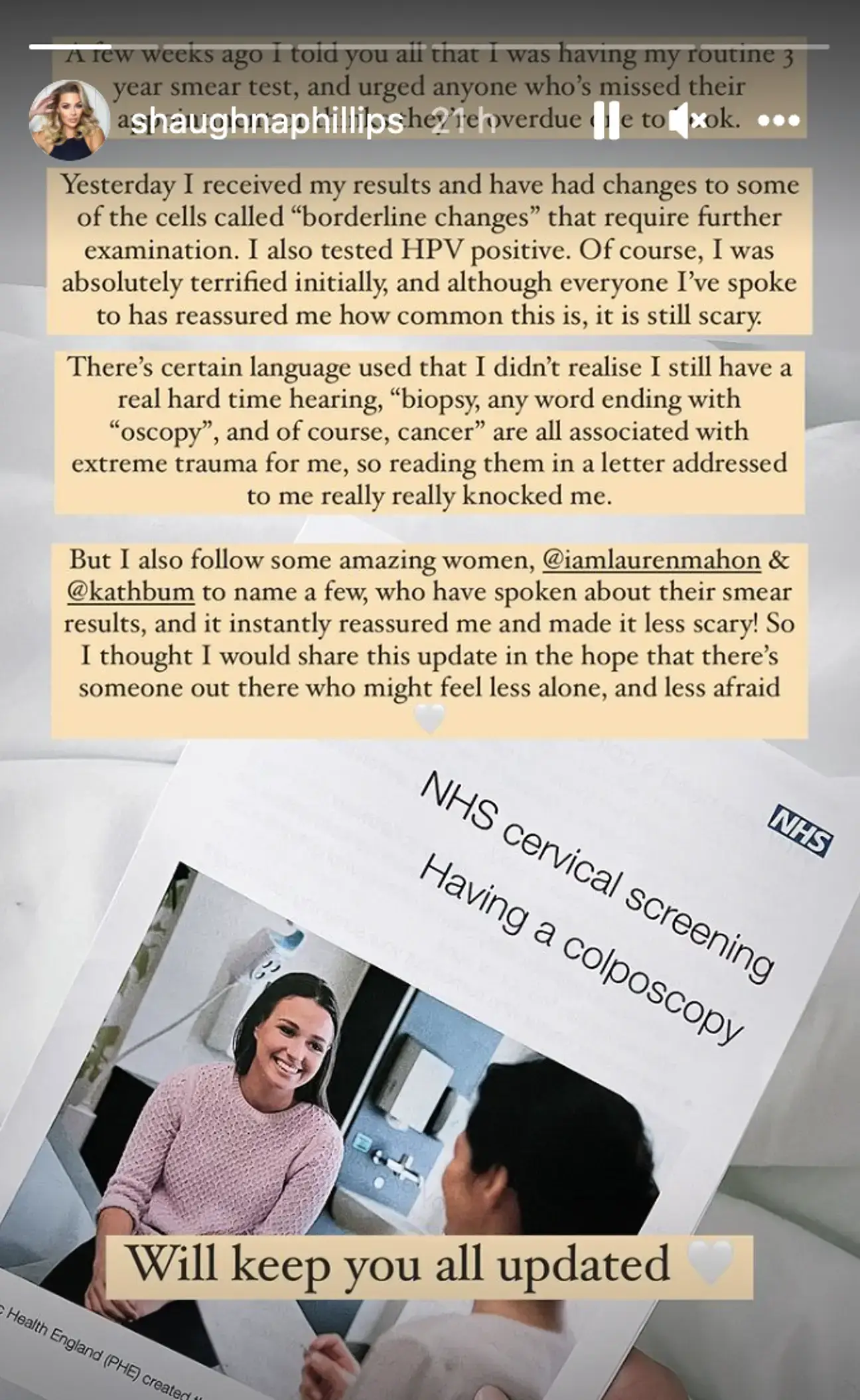 "I’m scared but that’s okay. Thank god for screening. Ladies, book your smears."