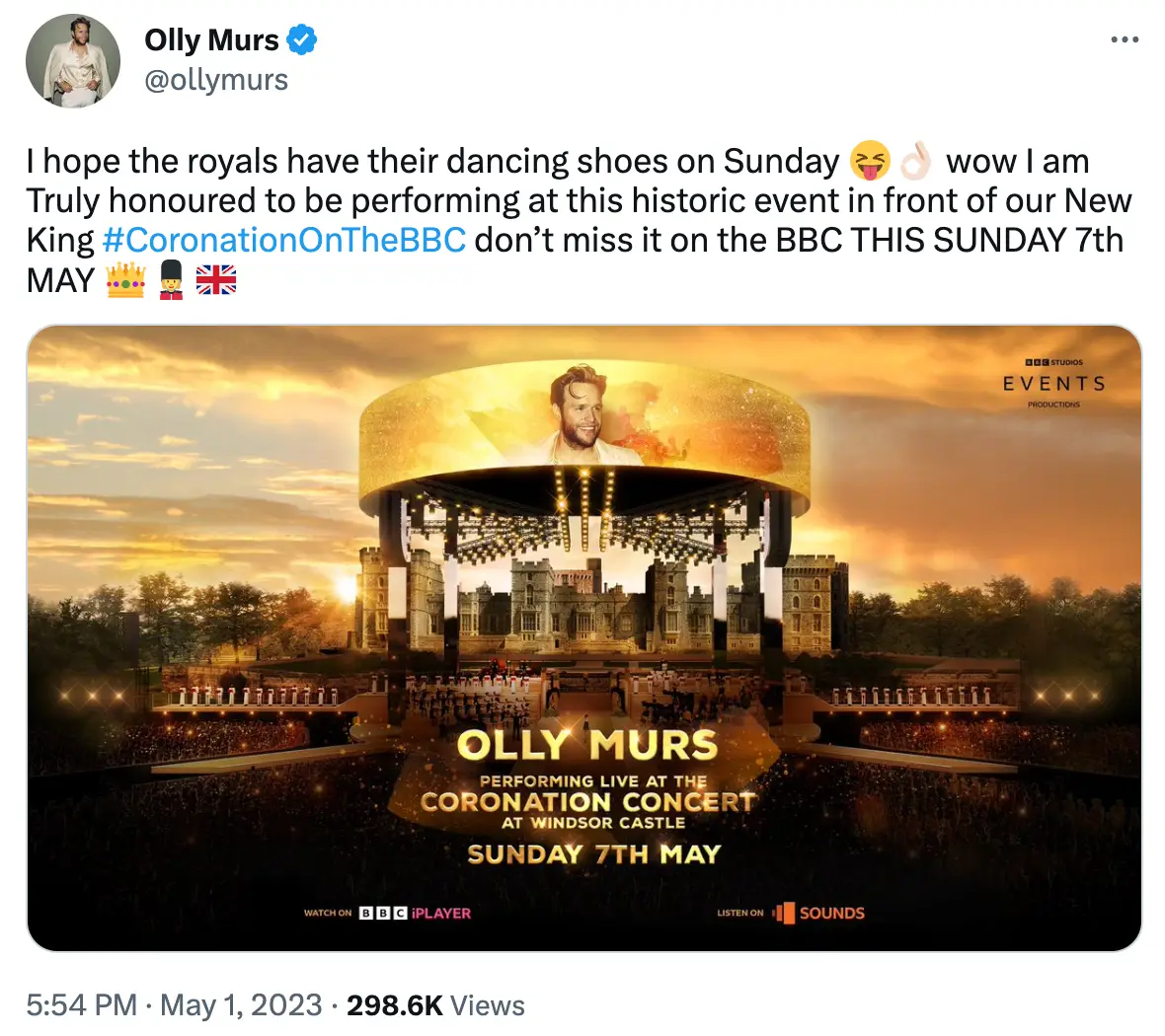 Royal fans have been left cringing over Olly Murs’ performace at King Charles’ coronation concert this evening after the star warned us about what to expect from his performance, having implied he'd be going aaaaall out.