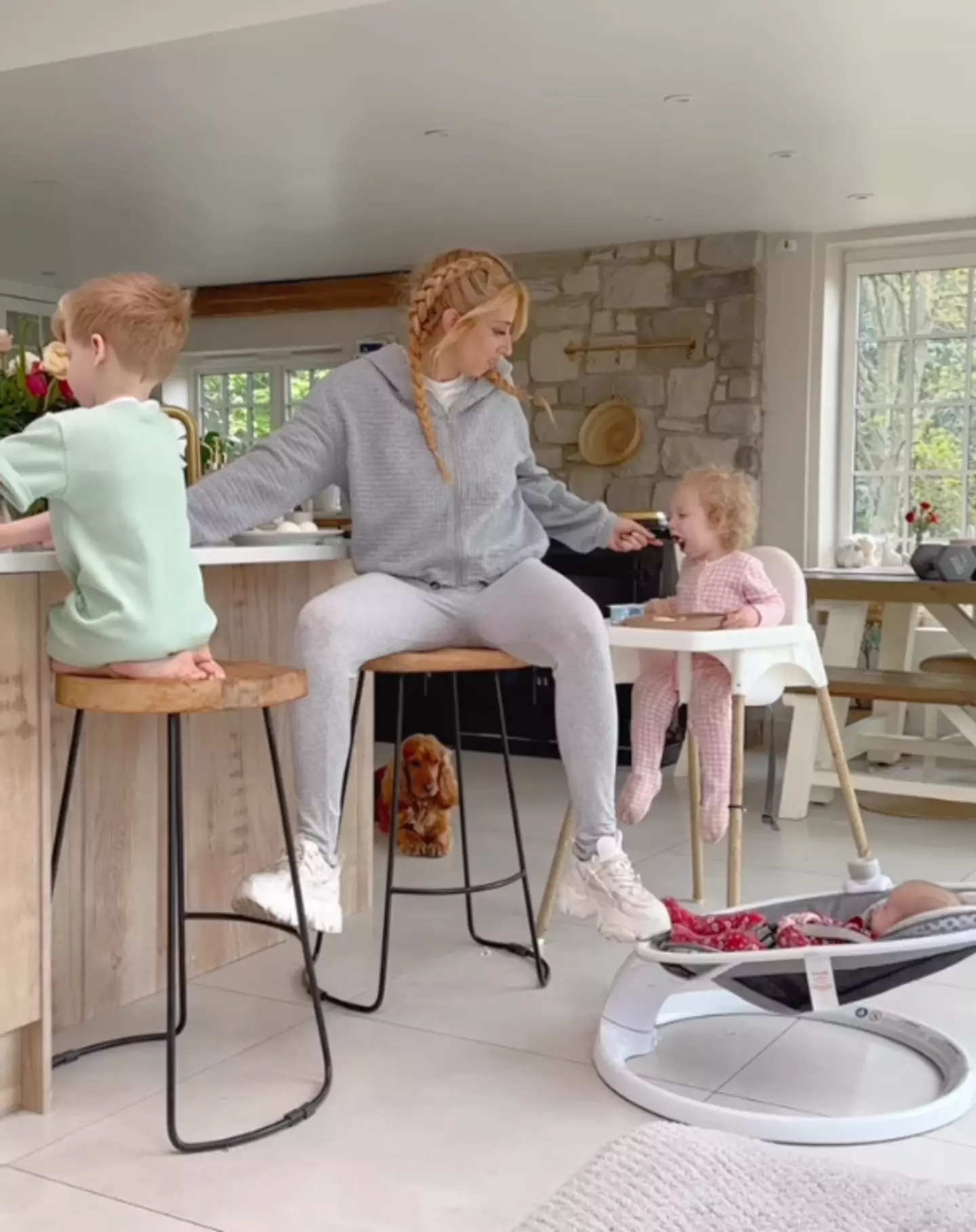 To encourage her on her first day back, Joe sent Stacey a sweet video of her juggling her three youngest kids Belle, Rose, and Rex.
