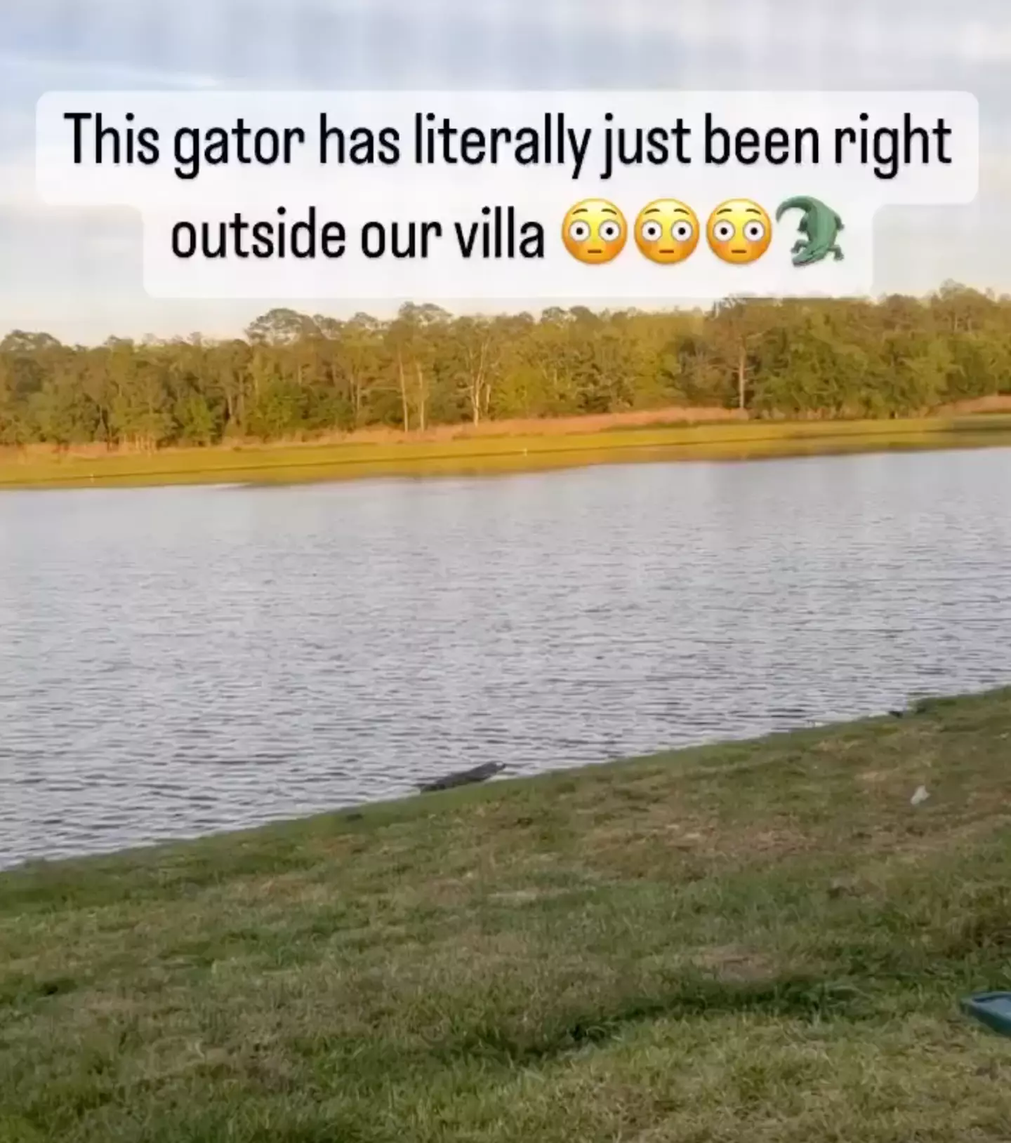 “Lots of you asking if that’s a snake next to the gator... No it’s not we thought it was but it’s a black bag,” she wrote, adding a crying-with-laughter emoji.