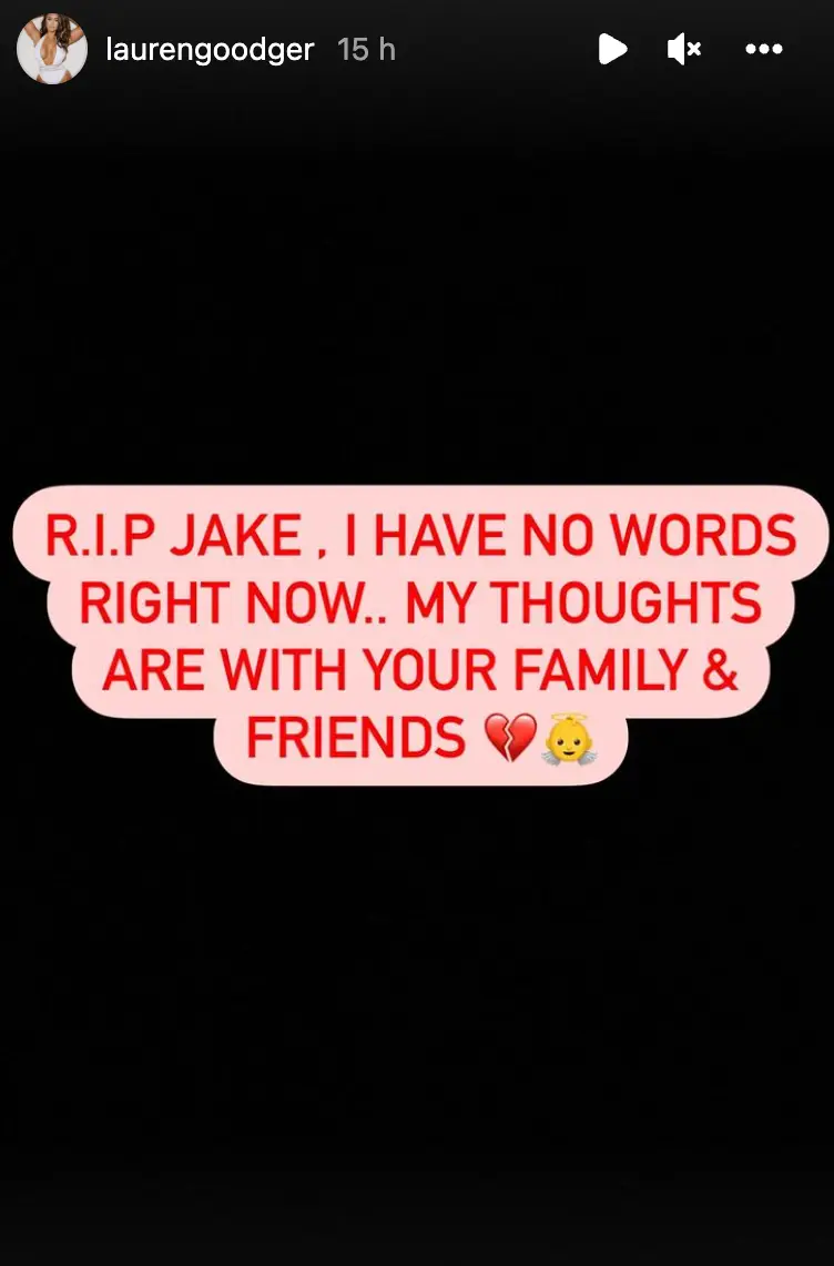 Taking to social media on Monday evening, Lauren made a simple post on both Twitter and her Instagram Stories, which read: "RIP Jake, I have no words right now... My thoughts are with your family and friends."