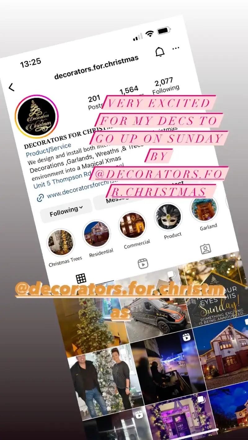 “Very excited for my decs to go up on Sunday by @decorators.for.christmas,” she said in an Instagram Story.