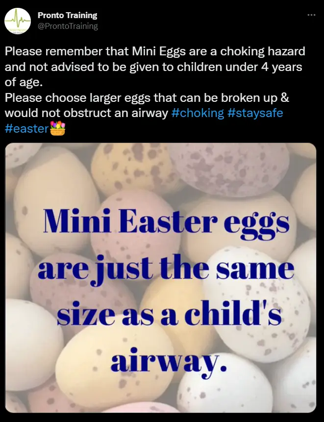 First Aid For Life have shared a guide on how to avoid choking hazards this Easter, and have told the story of a mother whose daughter choked on the aforementioned chocolate mini eggs.