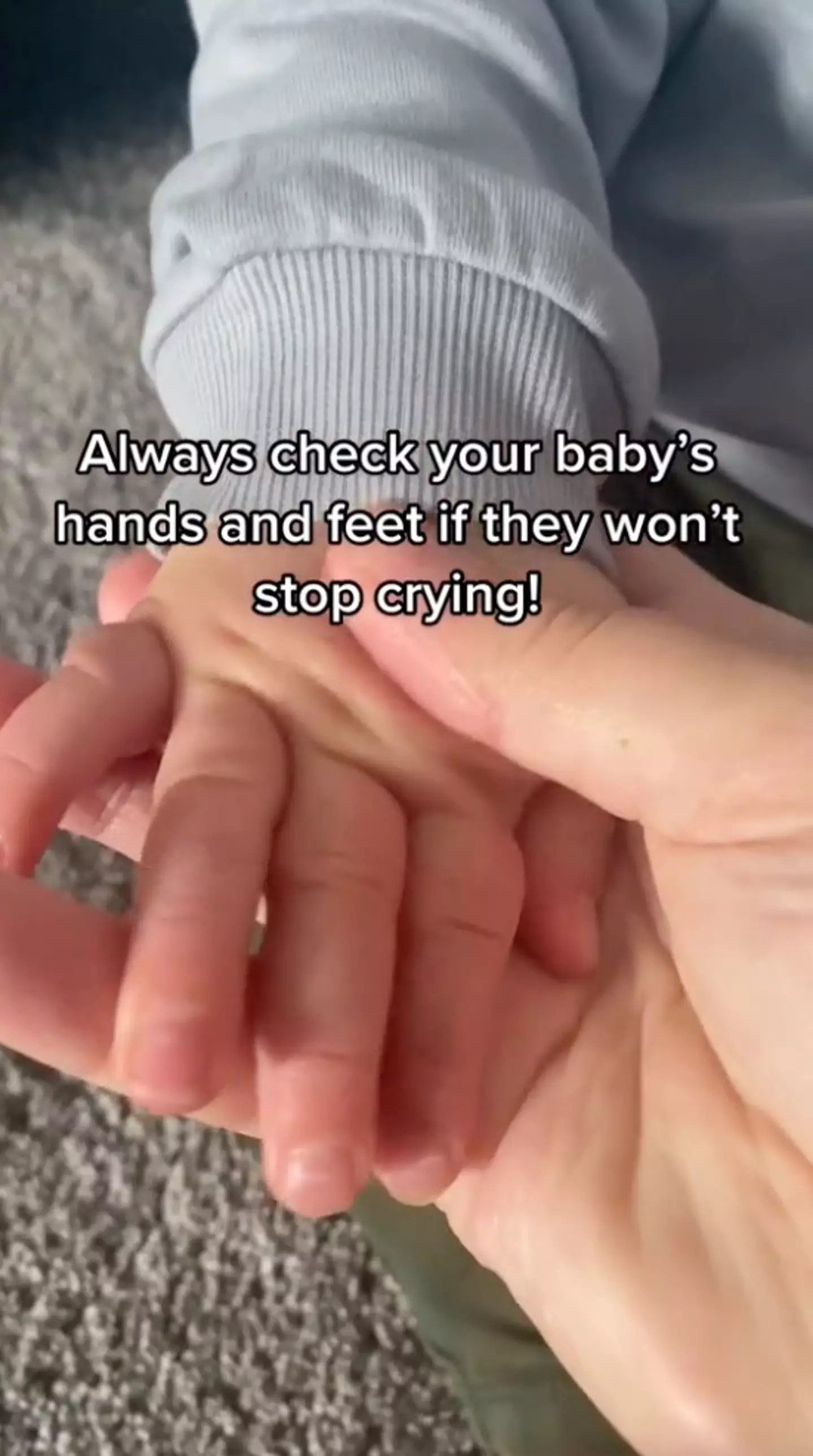 A mum has revealed why you should always check a baby's hands and feet if they won't stop crying.