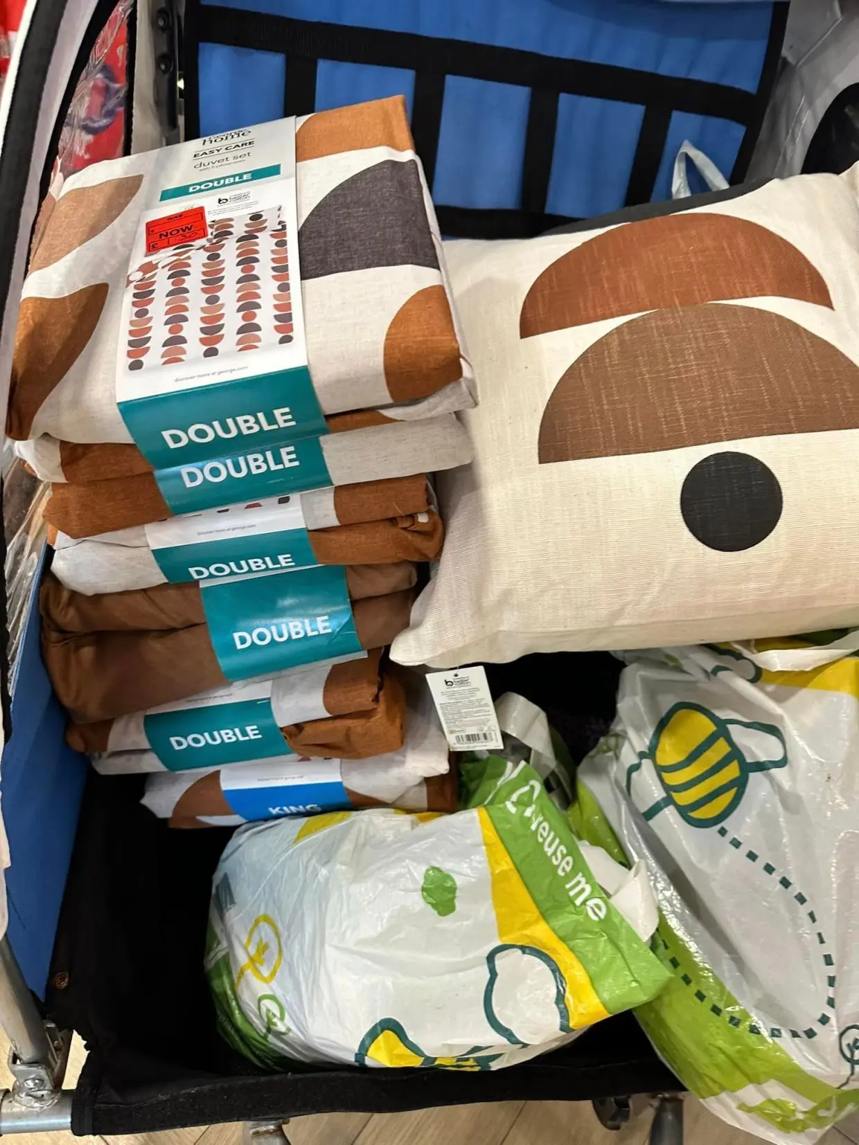 “As I arrived to the shelf, a lady started to bring out trolleys of bedding sets. I was the first so grabbed as much as I could carry.”
