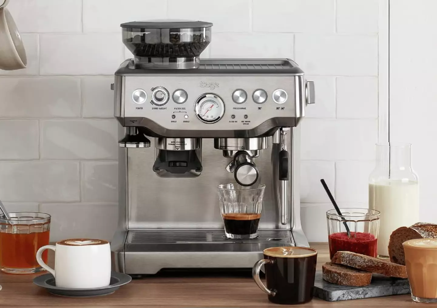 The Sage Barista Express is an ‘all-in-one’ coffee machine with an integrated grinder that turns beans into hot espresso in less than a minute. With control grinding, the machine delivers just the right amount of freshly ground coffee while its precise espresso extraction ensures water stays at the optimum temperature.