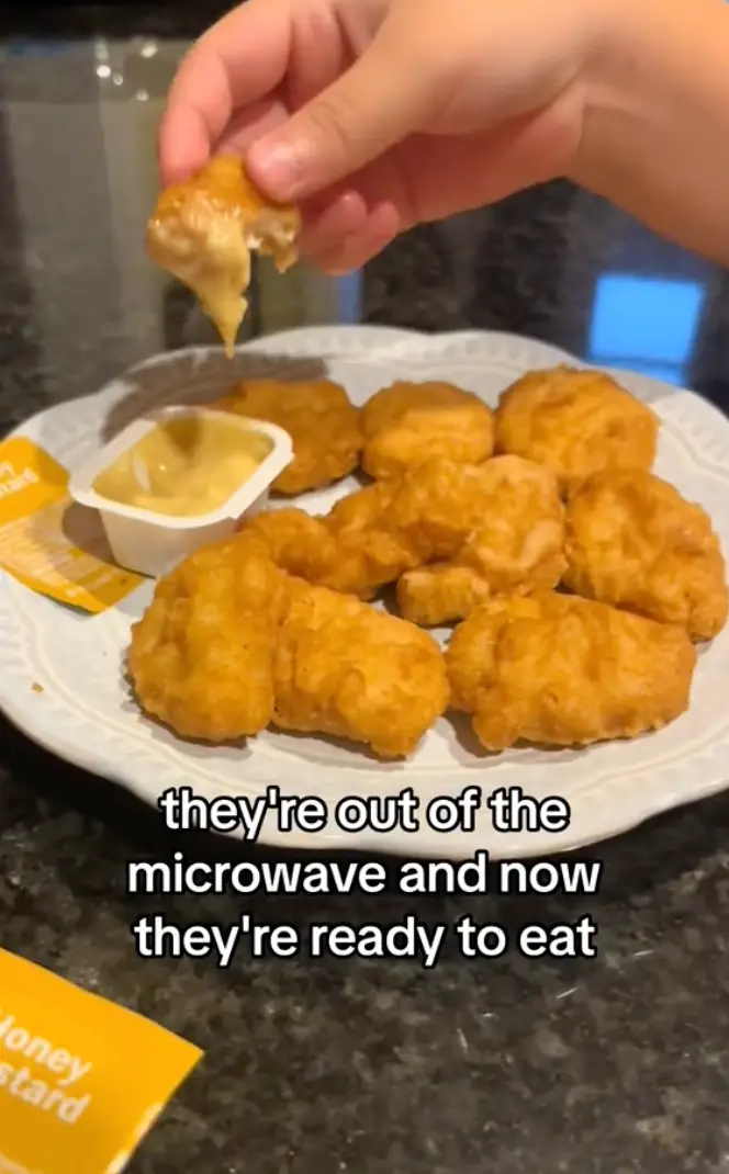 Taking the bag out of the freezer, she then showed how she puts the nuggets onto a plate before popping them in the microwave.