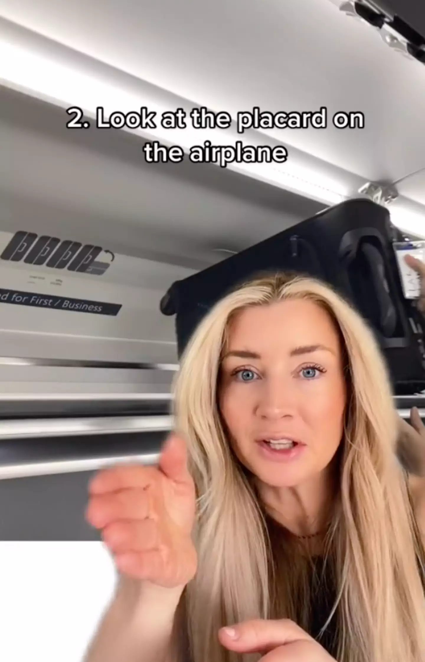 She advised people to check information placards on the plane, as these will often give extra details about how to store suitcases and bags.