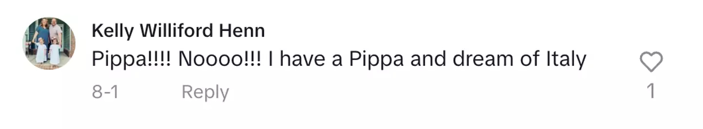"Pippa!!!! Noooo!!! I have a Pippa and dream of Italy," wrote one TikTok user.