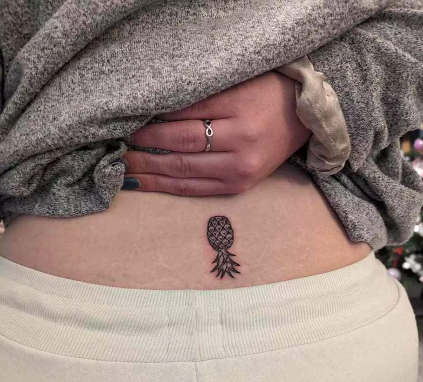 She’d gone for the outline of a pineapple, but had it placed on her skin upside-down.