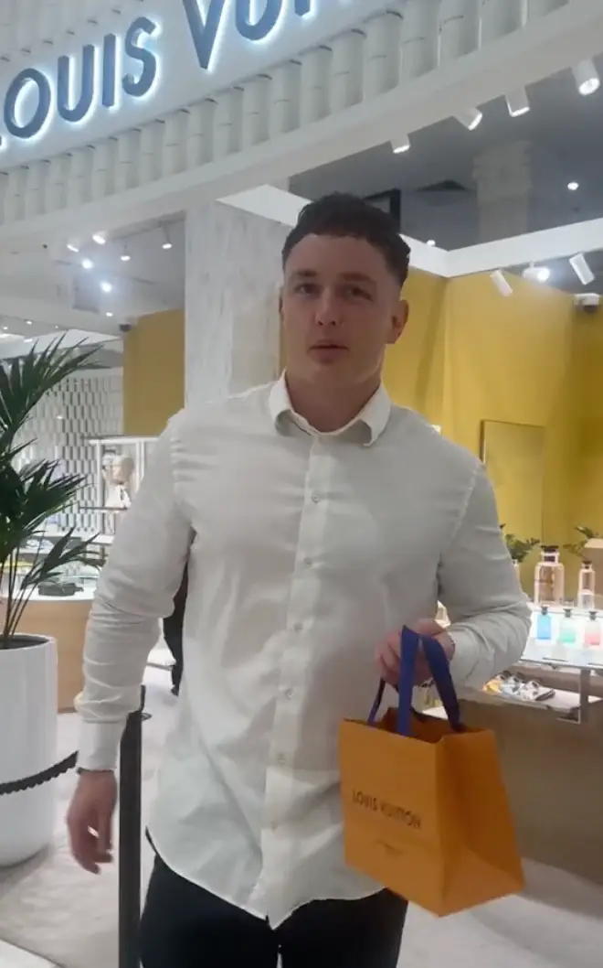 Later in the video, he’s videoed outside of Louis Vuitton where he buys a gold bracelet to give to one lucky employee before returning to Mecca.
