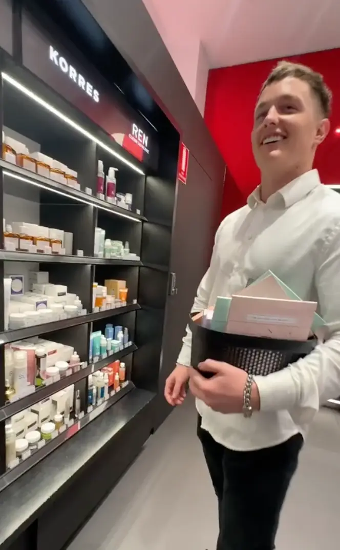 The video, which has since gained over 43,000 likes, shows Hunt racing around Mecca in Melbourne, a cosmetics store, filling up bags with treats for his women employees.