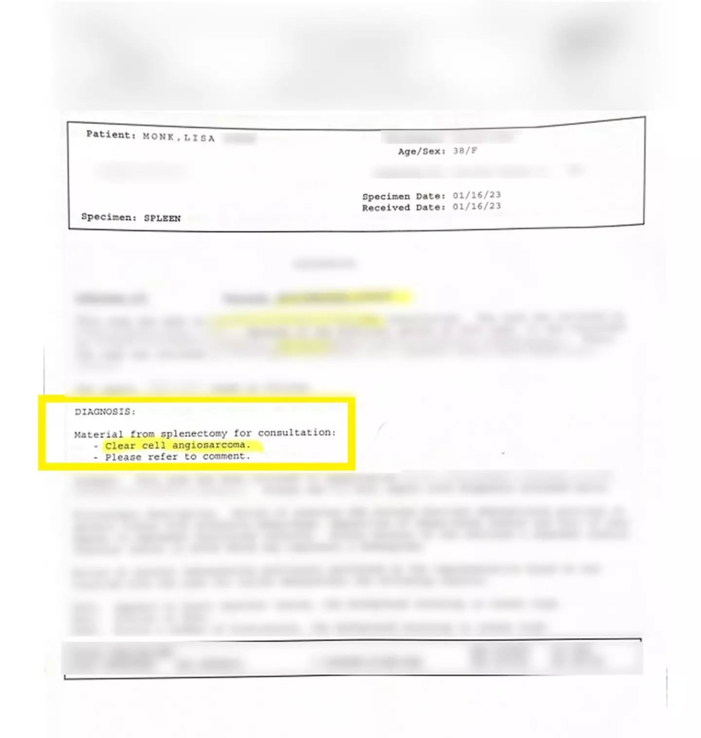 It later transpired that the initial report that had diagnosed her with terminal cancer had been passed onto the hospital, but because of their own policies, they had requested her spleen to carry out their own tests.
