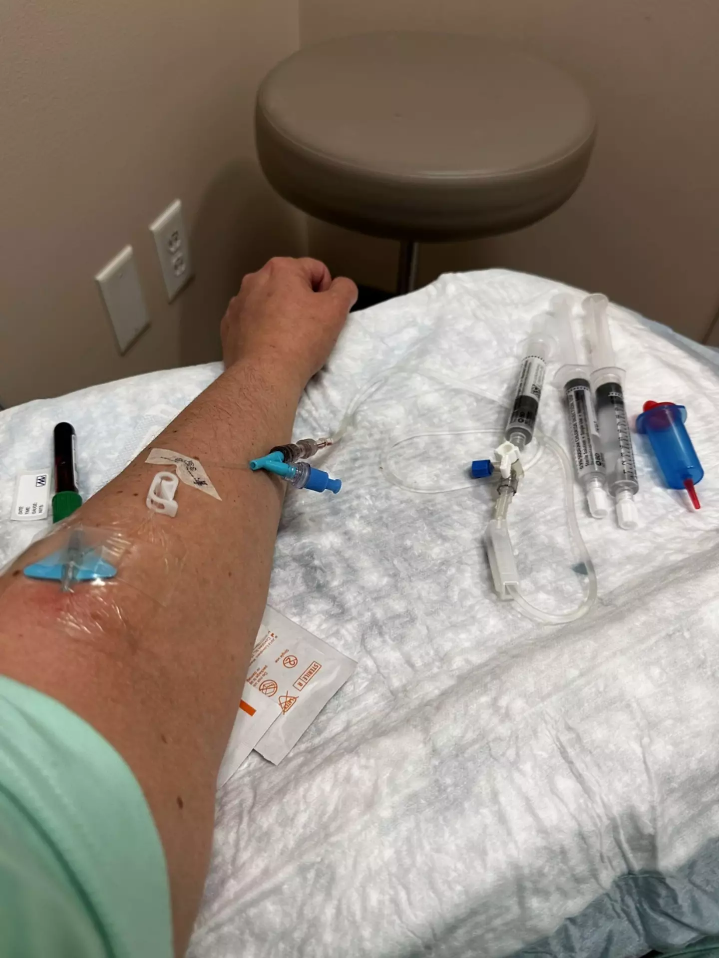 Lisa was then referred to a specialist hospital for cancer patients and after attending her first appointment in March 2023, was hospitalised immediately to begin chemotherapy.