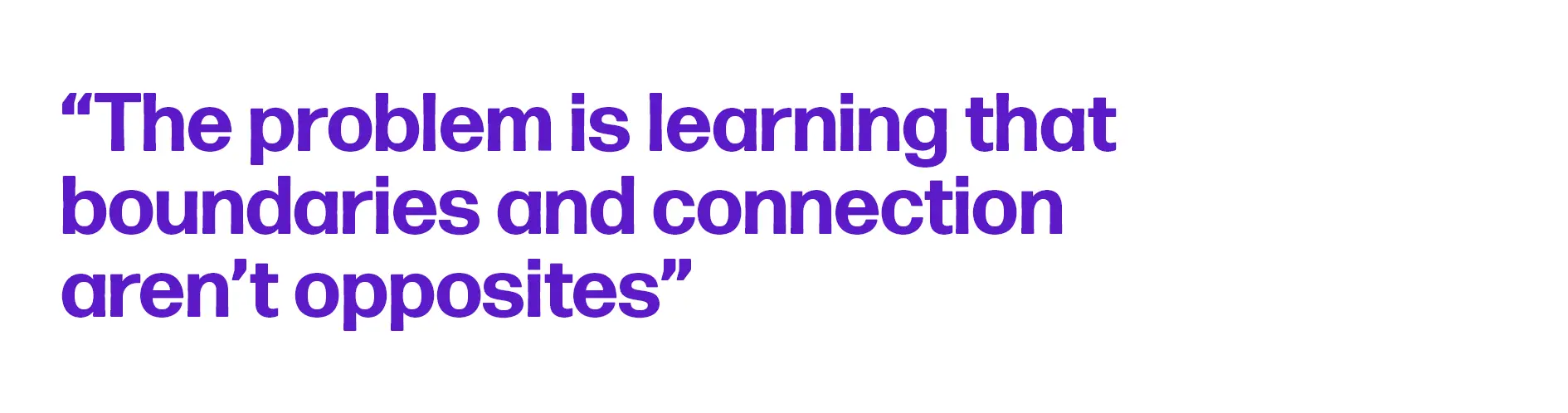 "It’s perfectly reasonable to want peace and safety. The problem is learning that boundaries and connection aren’t opposites - they have to coexist."