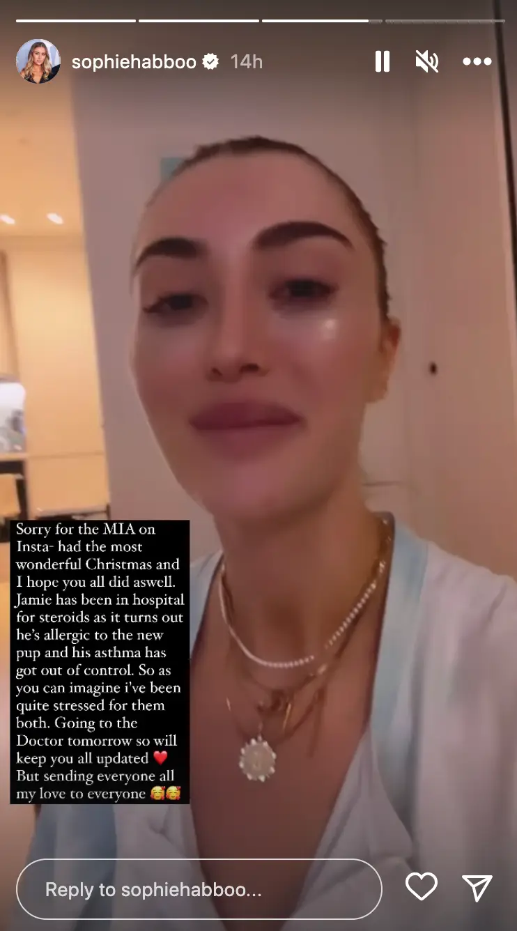 In a video posted on her Instagram story, Sophie wrote: "Sorry for the MIA on Instagram, had the most wonderful Christmas and I hope you all did as well.
