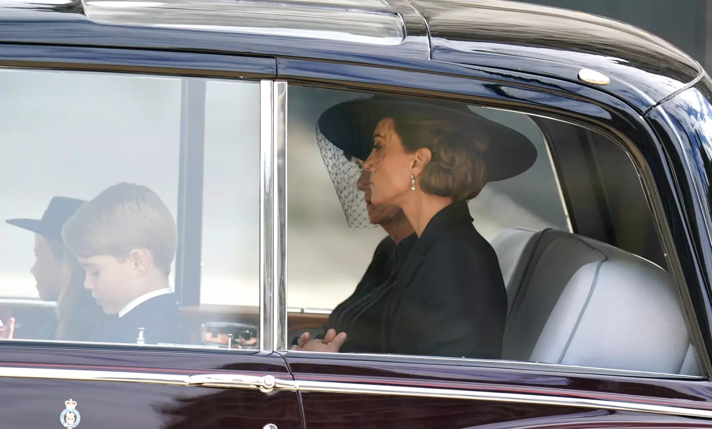 It turns out that Catherine wore the late Queen’s Japanese pearl choker necklace, the same one she wore to the Duke of Edinburgh’s funeral, which was not a state funeral.