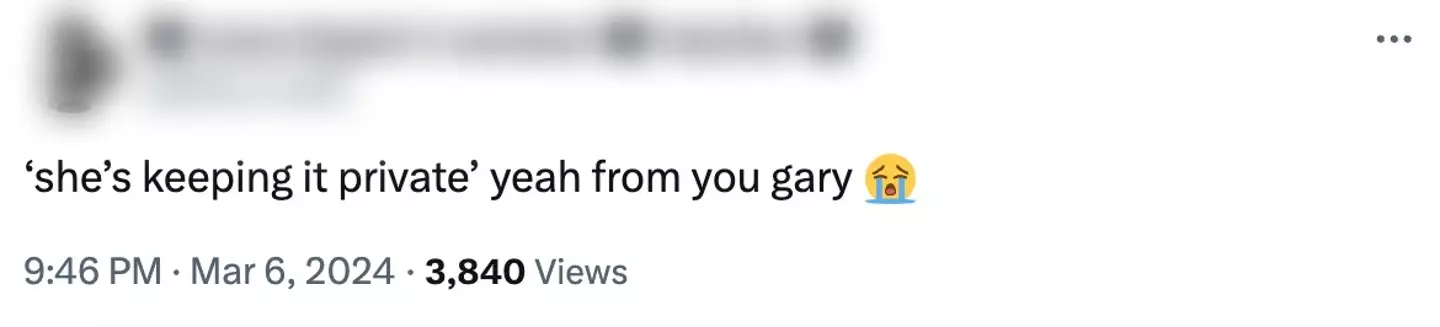 One X user commented during the show: “‘She’s keeping it private’ yeah from you gary.”