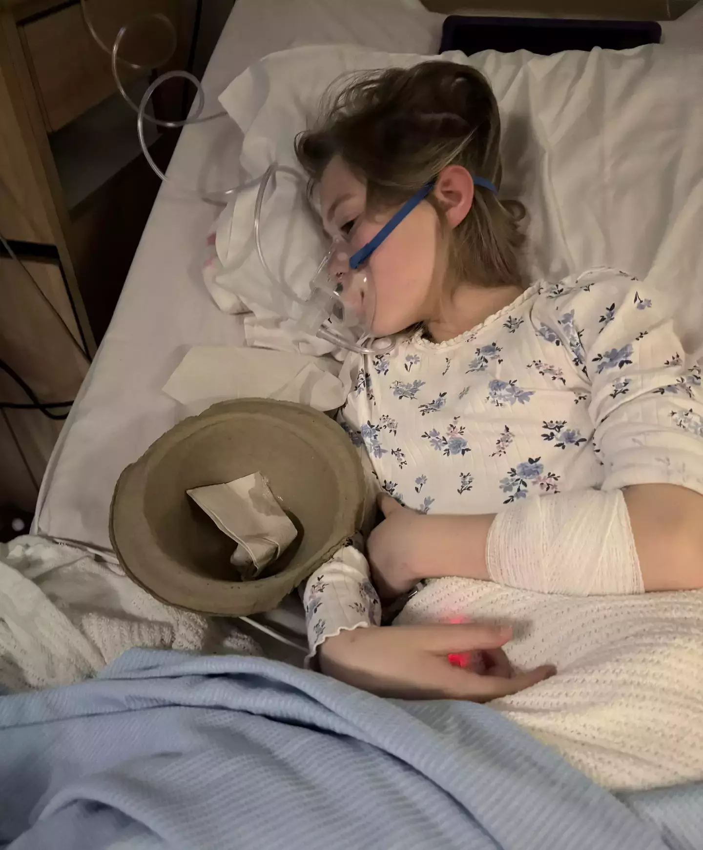 After three days in hospital where she had scans and x-rays, Mia-Rose - who's currently scared to eat following the traumatic ordeal - was given the all-clear to come home, but needs a follow-up appointment to see if there's any permanent damage.