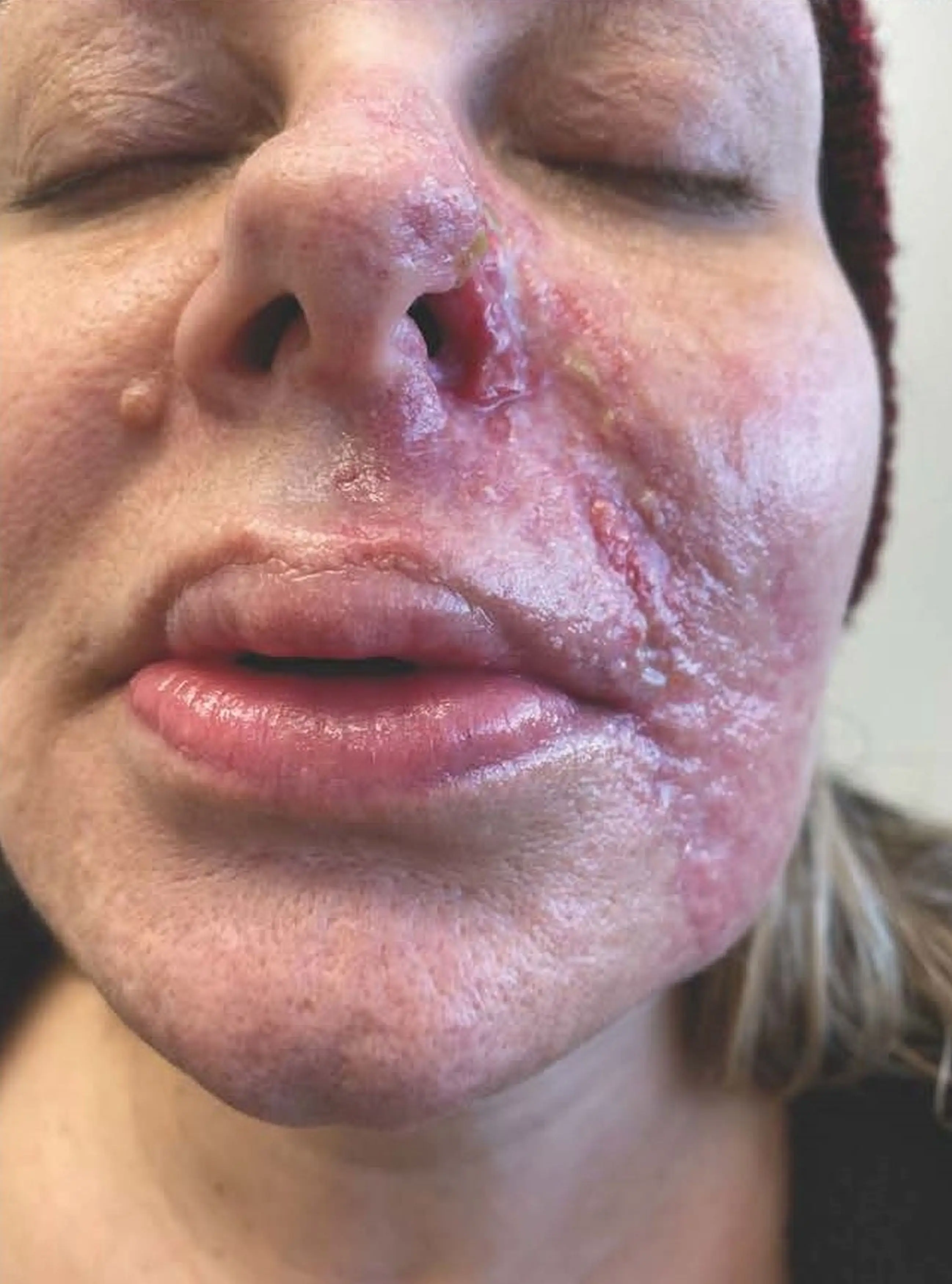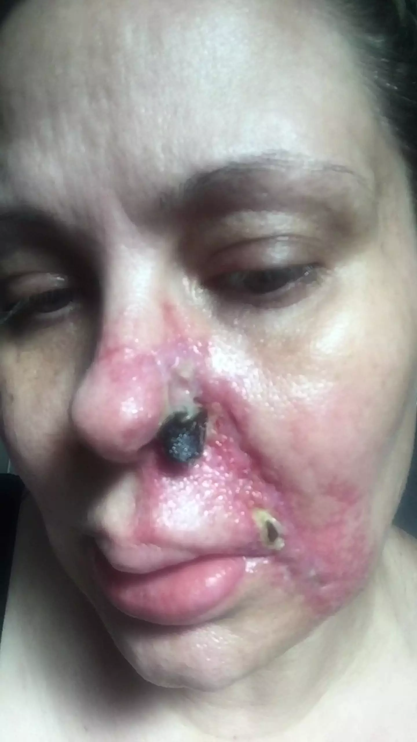 "That was really terrifying. It was Halloween of 2020 the day that my entire left nostril just detached and was dangling there by a tiny piece of flesh. I was in shock and terrified.