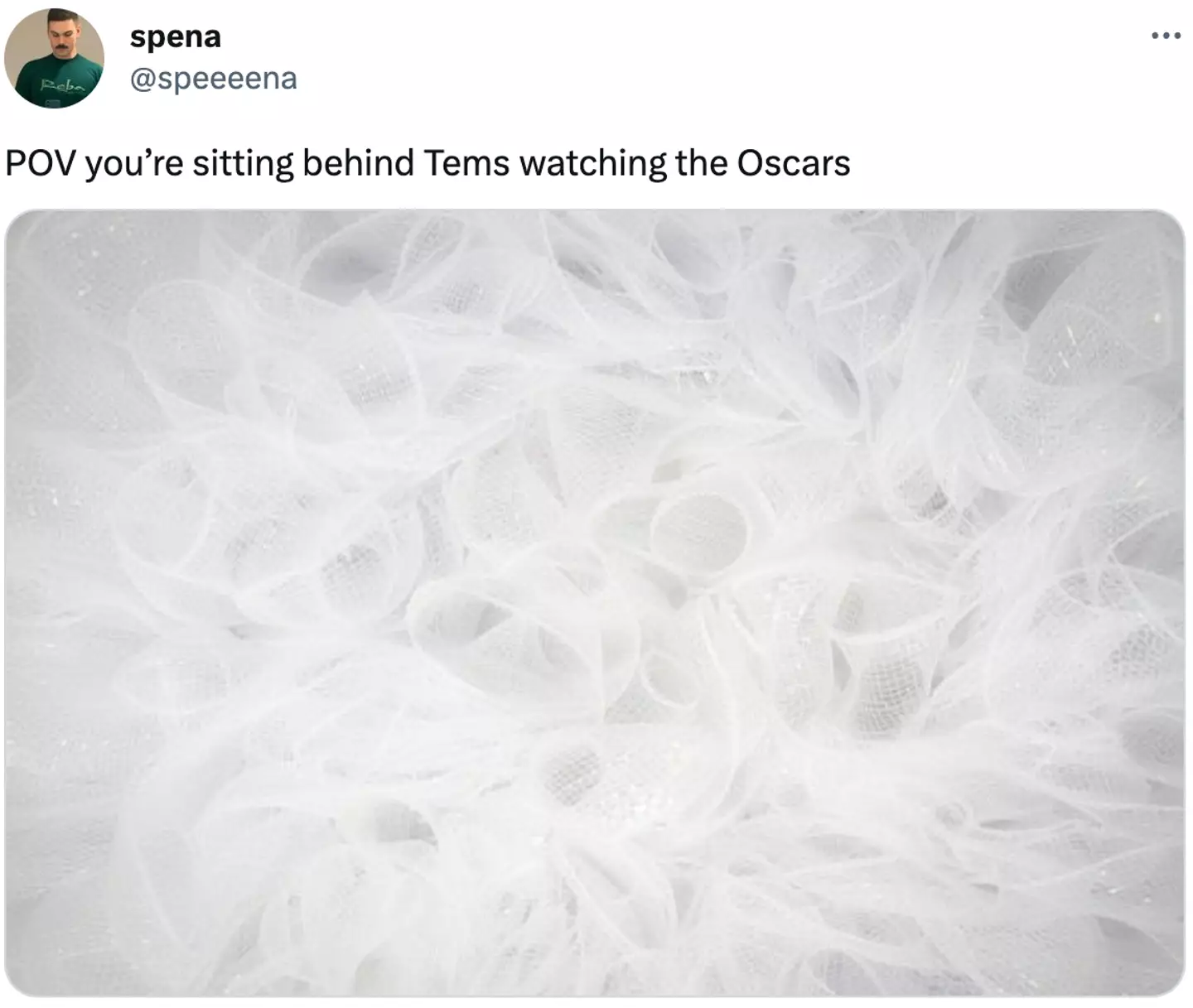 "I guess the people behind the white veil don’t get to see the show," one person tweeted.