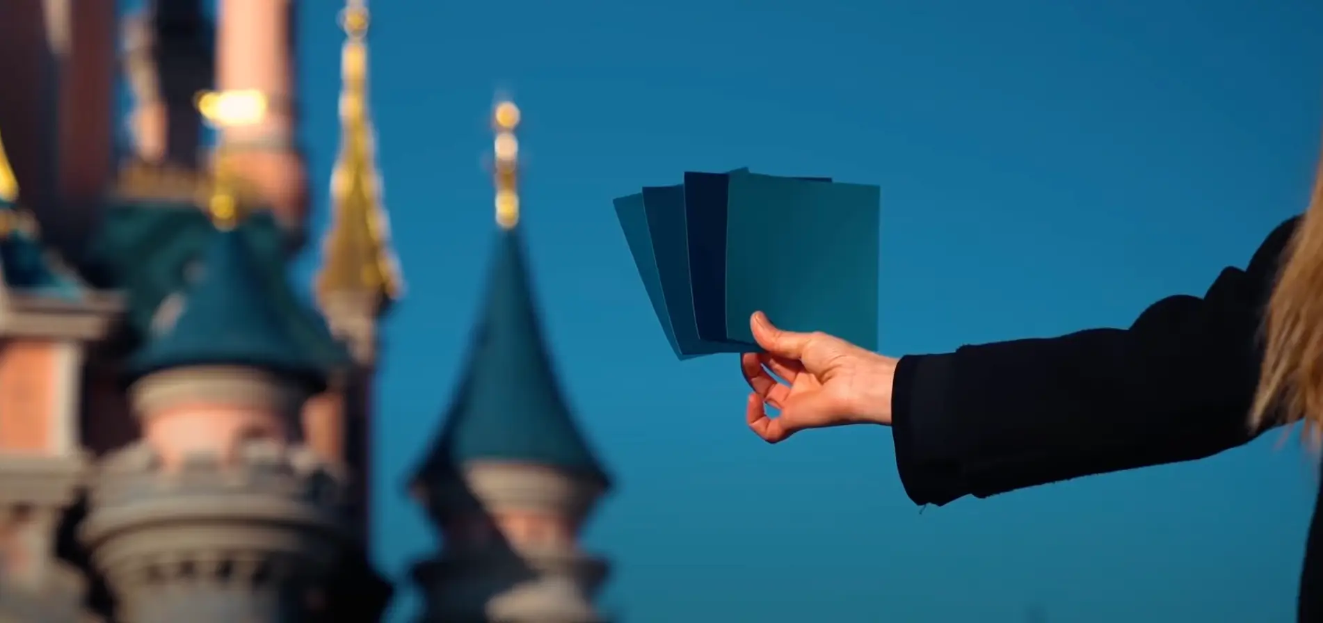 For instance, in Paris, the climate is typically colder and the sky can appear cooler-toned, while across the pond in Disney's Orlando park, the sky tends to be a lot brighter, meaning the blue used is less muted and pops more.