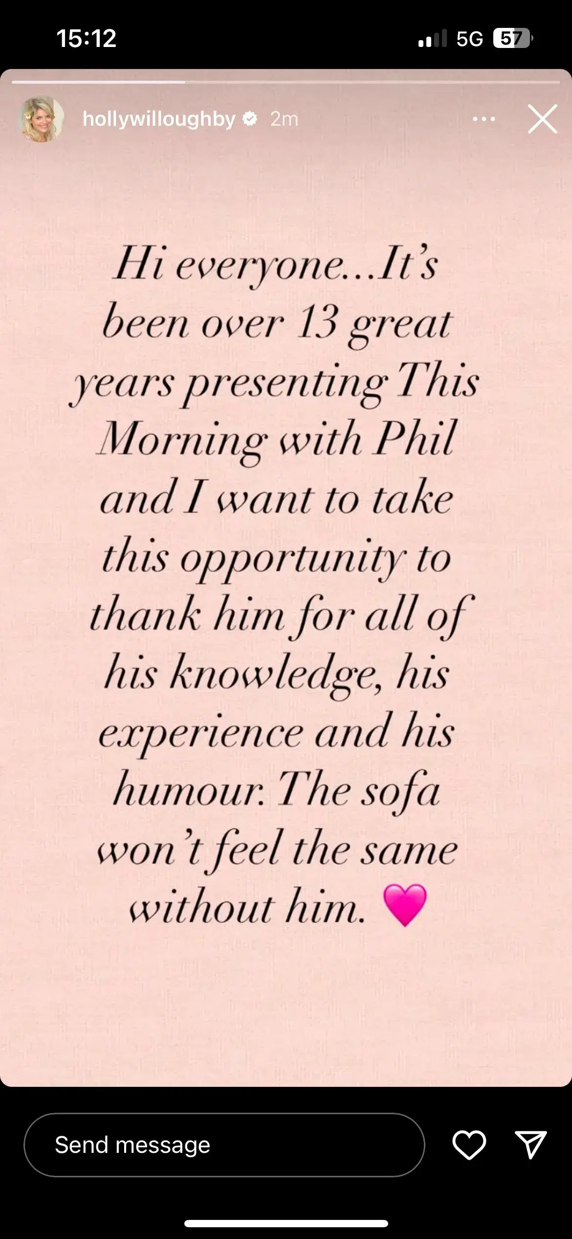 His longtime co-presenter Holly Willoughby has spoken about about the news, admitting the 'sofa won't feel the same without him'.