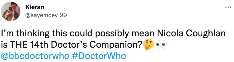Another Doctor Who fan mused: “I’m thinking this could possibly mean Nicola Coughlan is THE 14th Doctor’s Companion?”
