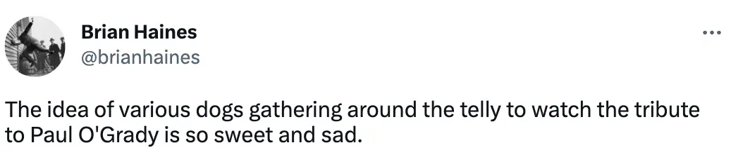 A second viewer tweeted: “The idea of various dogs gathering around the telly to watch the tribute to Paul O'Grady is so sweet and sad.”